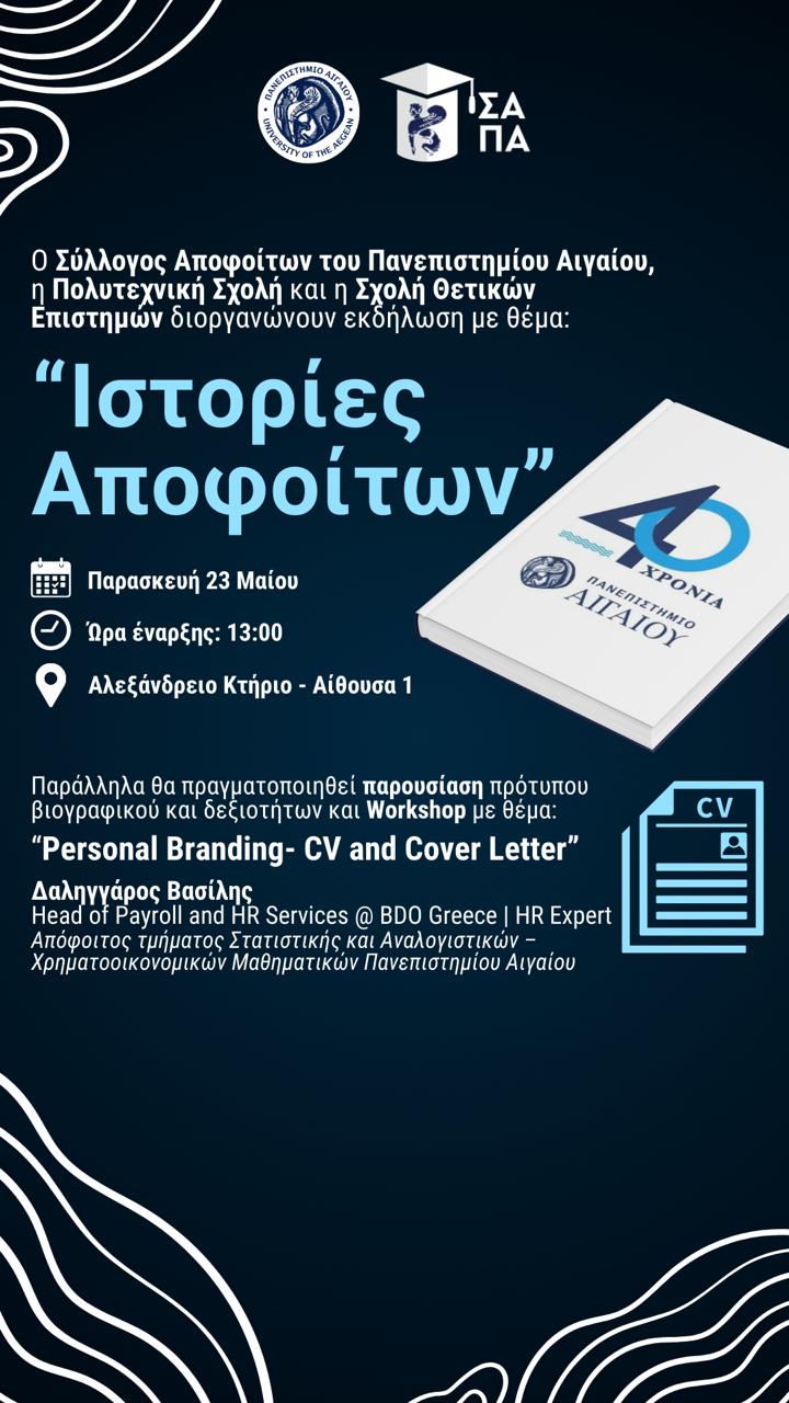 ΠΡΟΣΚΛΗΣΗ ΣΕ ΕΚΔΗΛΩΣΗ ΣΥΛΛΟΓΟΥ ΑΠΟΦΟΙΤΩΝ ΠΟΛΥΤΕΧΝΙΚΗΣ ΣΧΟΛΗΣ & ΣΧΟΛΗΣ ΘΕΤΙΚΩΝ ΕΠΙΣΤΗΜΩΝ ΠΑΝΕΠΙΣΤΗΜΙΟΥ ΑΙΓΑΙΟΥ